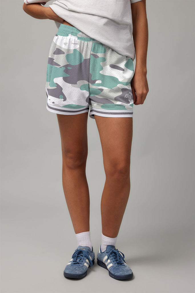 These are a fine mesh material, with pockets and detailed stitching- sitting slightly shorter than our classic short fit. The camo pattern brings a bold, edgy style to your athletic wardrobe.