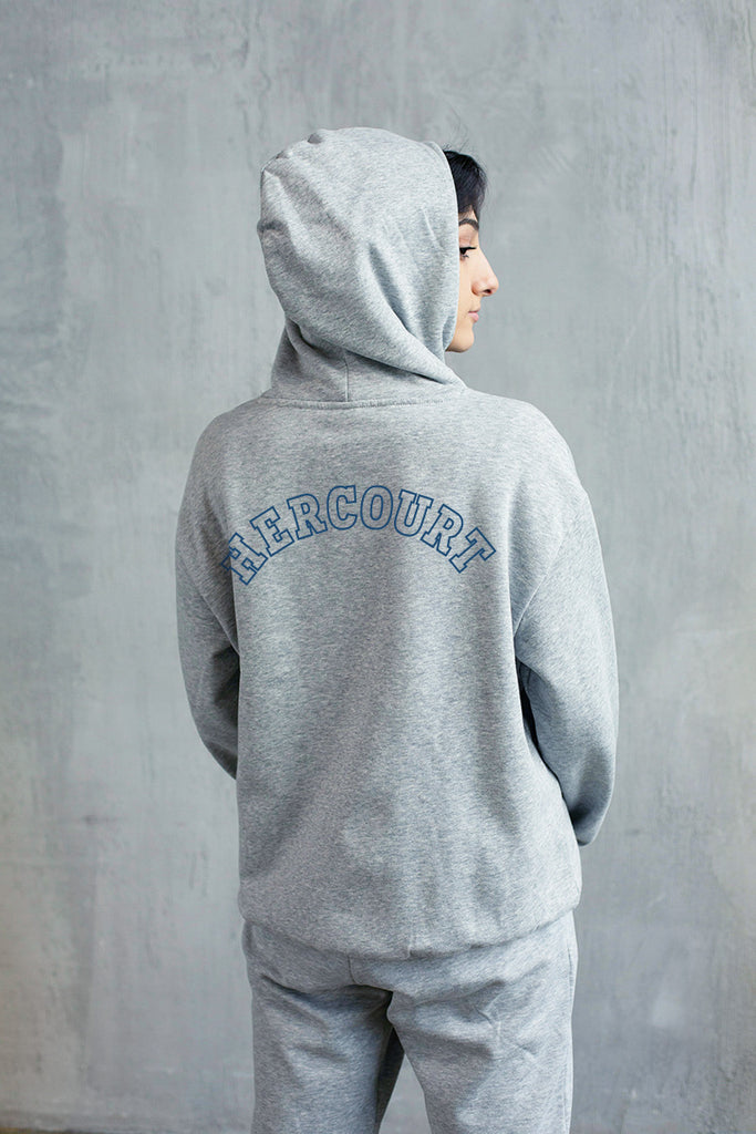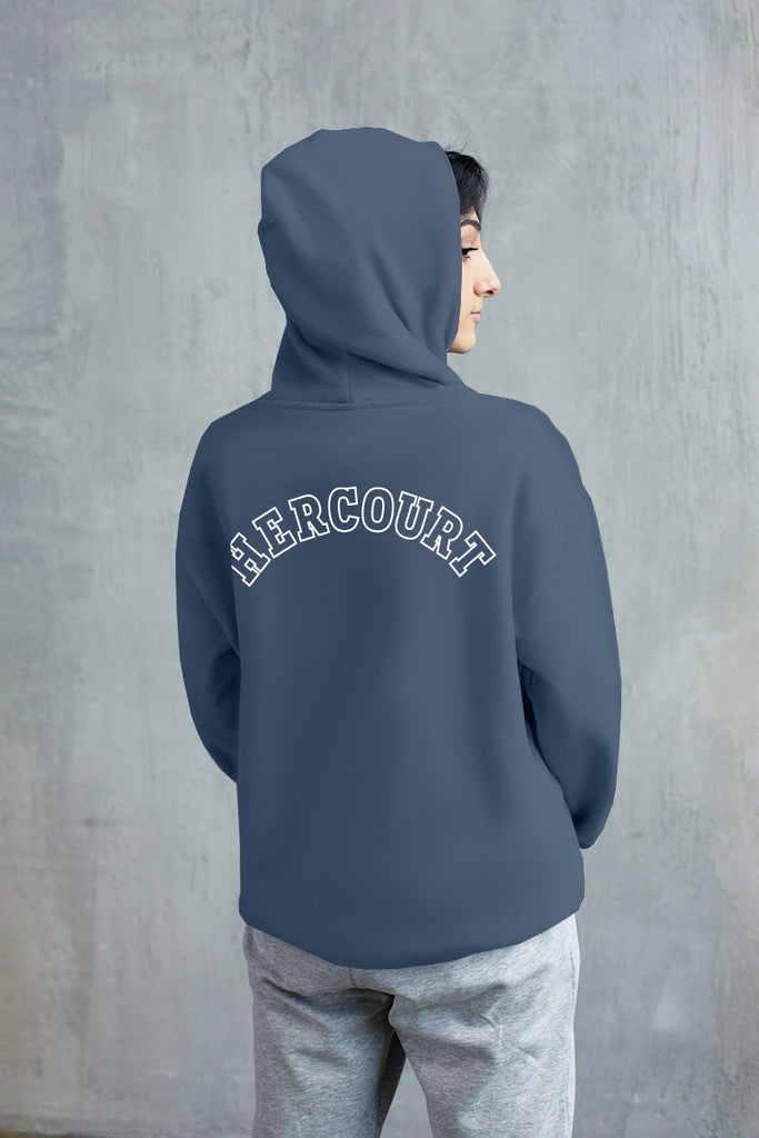 Features a small left chest Hercourt Crown logo and a script "Hercourt" logo across the back